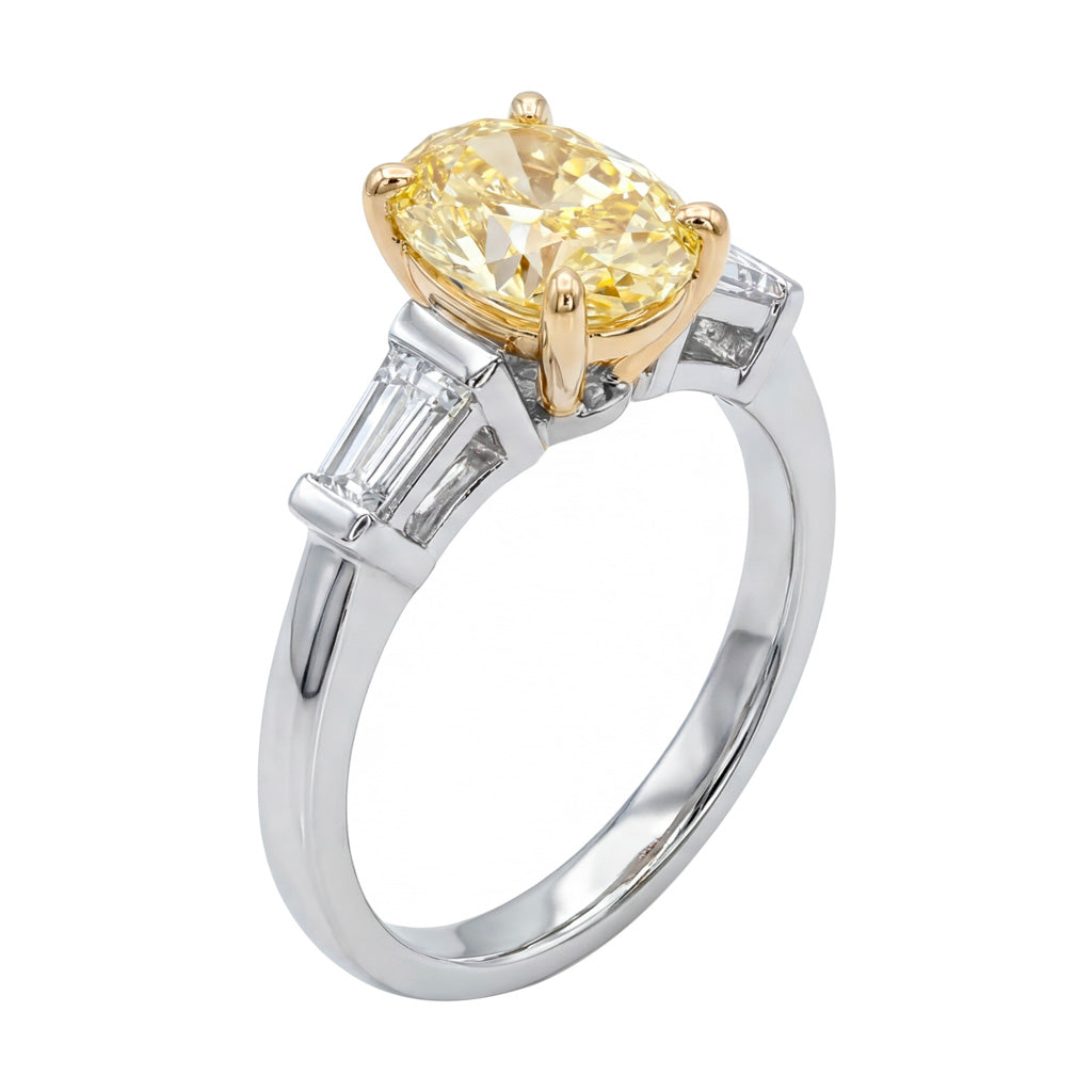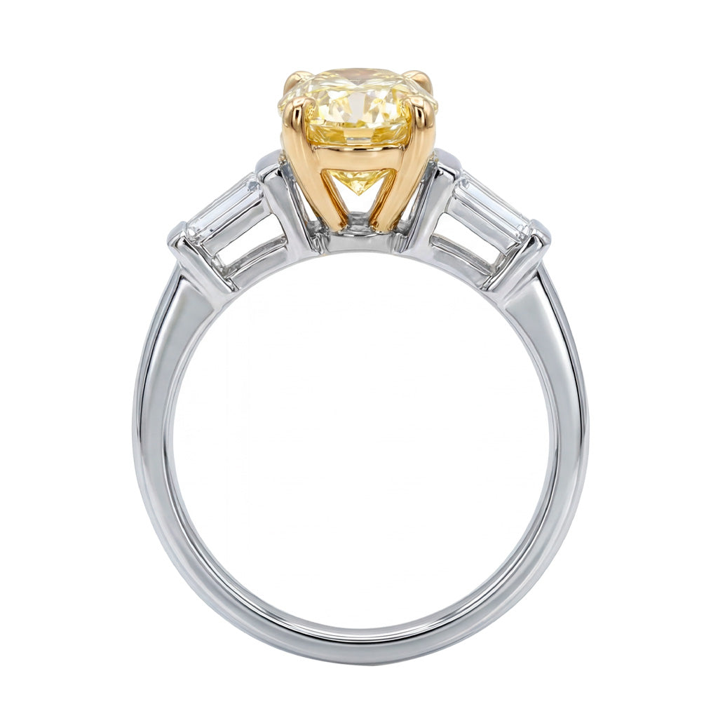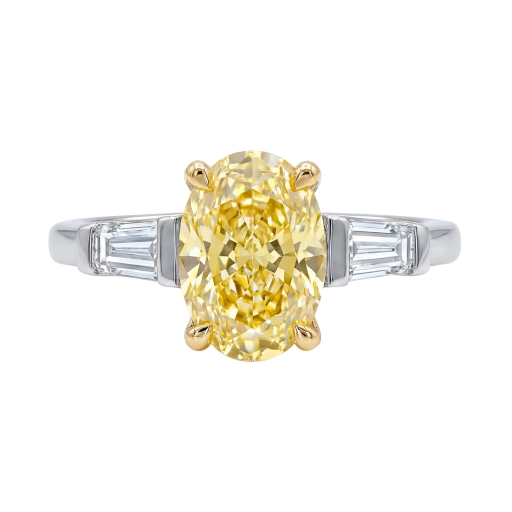 A los lados, un par de diamantes baguette de un peso total 0.22 ct enmarcan la gema principal con líneas limpias y modernas, aportando equilibrio y una luminosidad delicada que realza aún más el color intenso del diamante central. El resultado es un diseño contemporáneo, refinado y lleno de intención: un anillo que celebra la luz, la individualidad y los momentos que merecen ser recordados. Una pieza creada para quien desea llevar belleza, fuerza y brillo excepcional en cada día de su vida.