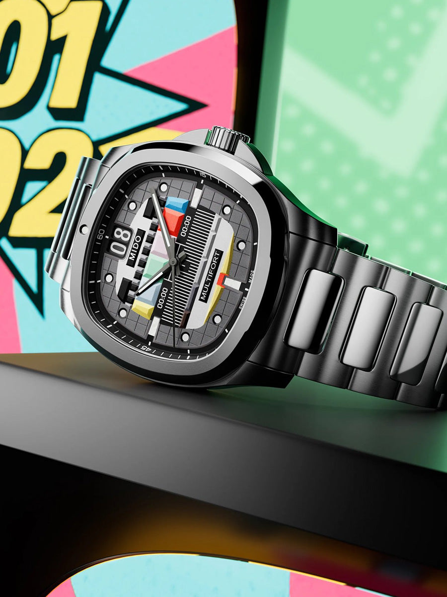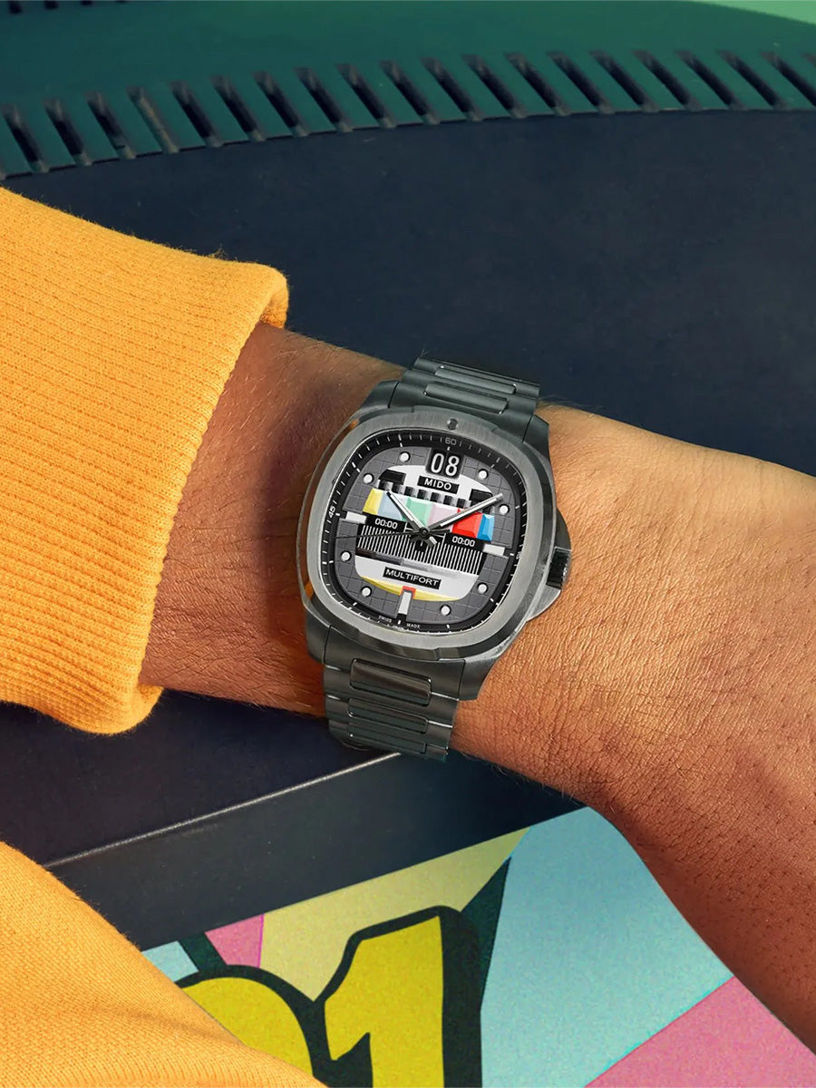 ¡Un brillante regreso! Nacido de la extraordinaria herencia de MIDO, el icónico diseño con caja en forma de TV vuelve a ocupar el centro del escenario con el Multifort TV Big Date, tan intenso como preciso gracias a su formidable movimiento mecánico. El diseño moderno y dinámico de este reloj suizo resalta con una carátula impactante y una función distintiva: la Gran Fecha a las 12 en punto. Su excepcional movimiento automático de última generación, el Calibre 80, está equipado con un espiral de alta tecnología en Nivachron™, que ofrece una resistencia sobresaliente a los golpes y a los campos magnéticos.