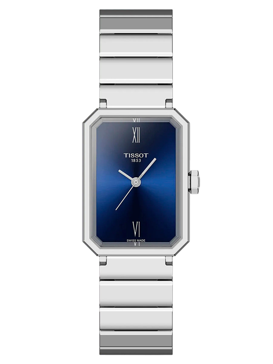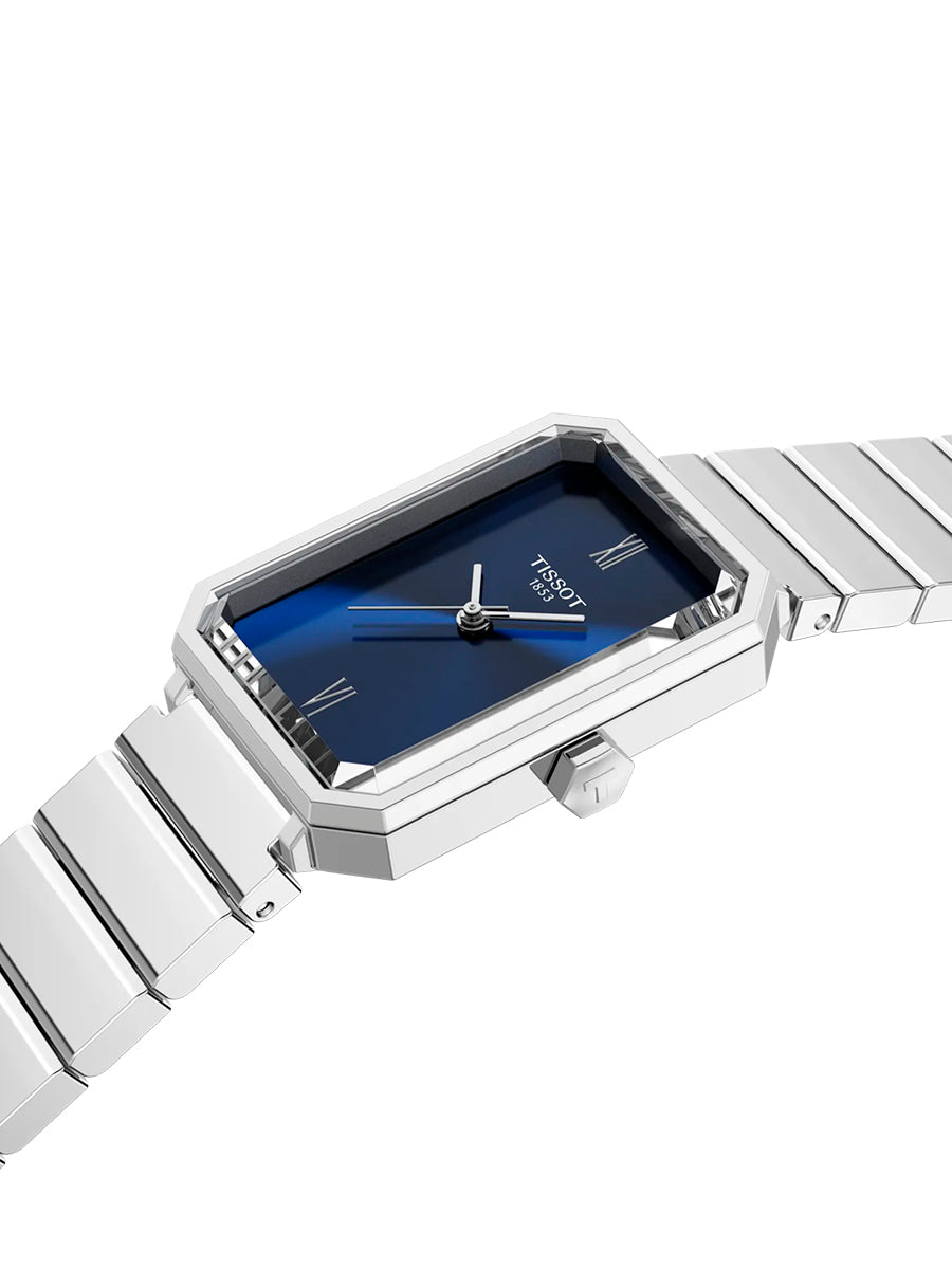 El reloj SRV se inspira en la época Art Déco, desarrollada en la década de 1920. Esta época, caracterizada por formas geométricas y patrones abstractos, se convirtió en un estilo dominante en arquitectura, diseño de interiores, moda y artes gráficas. Si bien el SRV se inspira directamente en un modelo de 1975, ese mismo diseño fue en sí mismo una reinterpretación de las creaciones anteriores de Tissot de la década de 1920. El movimiento de cuarzo del SRV ofrece una precisión que impulsa a avanzar con ímpetu y, con el indicador de fin de vida útil, el SRV anticipa su próximo movimiento, para que siempre esté preparado. Más que un nombre, SRV significa Zafiro Rectángulo V: un cristal de zafiro facetado con una silueta rectangular, y la "V" un guiño a su resistencia al agua de 5 bares, simbolizada por el número romano 5. El brazalete de metal es cómodo, robusto, fácil de limpiar y duradero.