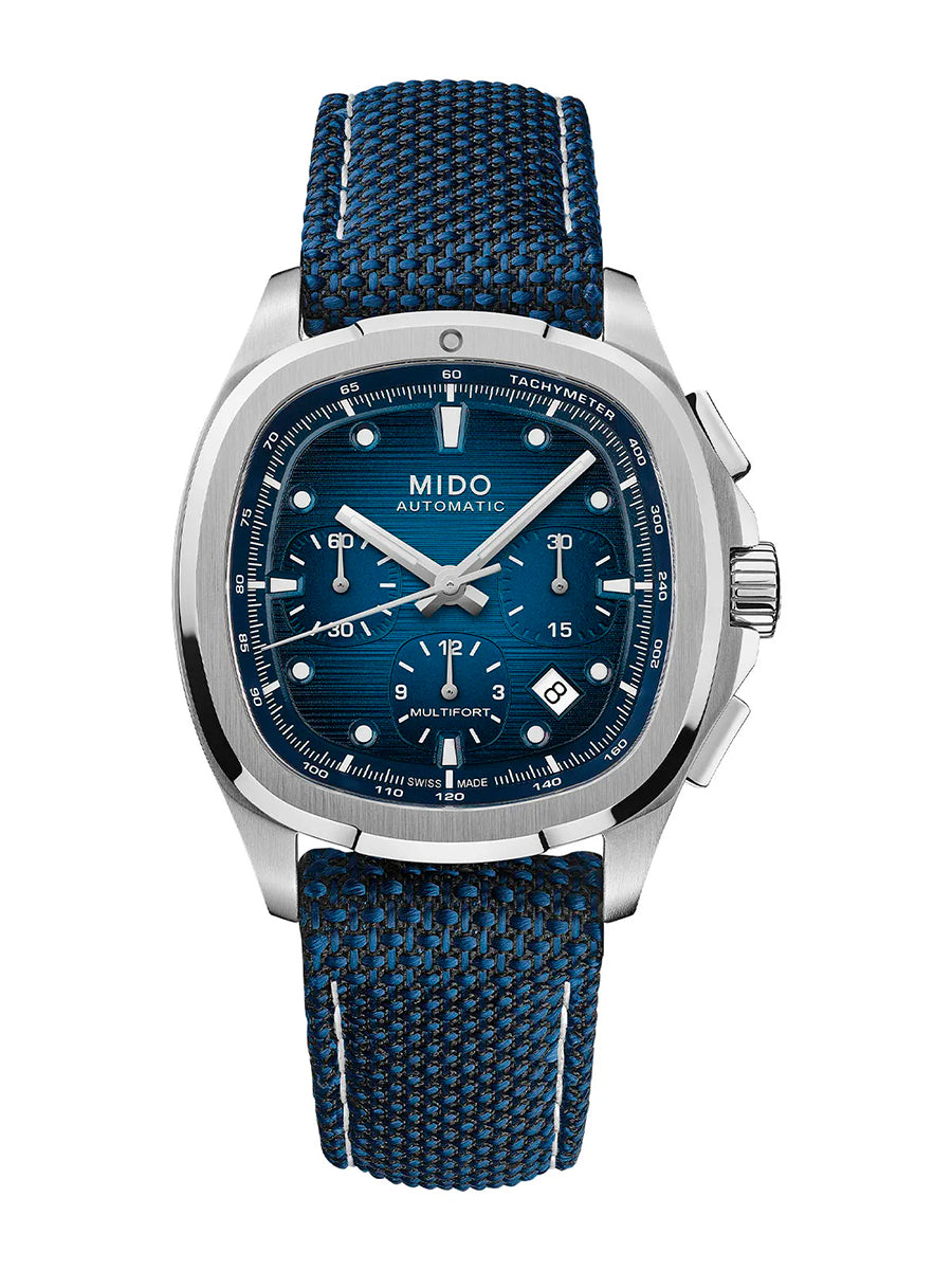 ¡Un diseño que capta todas las miradas! Fiel al espíritu audaz de MIDO, Multifort TV Chronograph impone su carácter con una caja única en forma de TV. Su silueta contemporánea se realza con una carátula cepillada en horizontal, dos contadores integrados con sutileza y detalles en contraste que resaltan su personalidad. En su interior late el Calibre 60, un movimiento automático suizo de alta precisión que ofrece hasta 60 horas de reserva de marcha. Técnico, expresivo y perfectamente equilibrado, este reloj está diseñado para acompañarte en cada momento destacado del día. Incluye una correa adicional para mayor versatilidad y comodidad.
