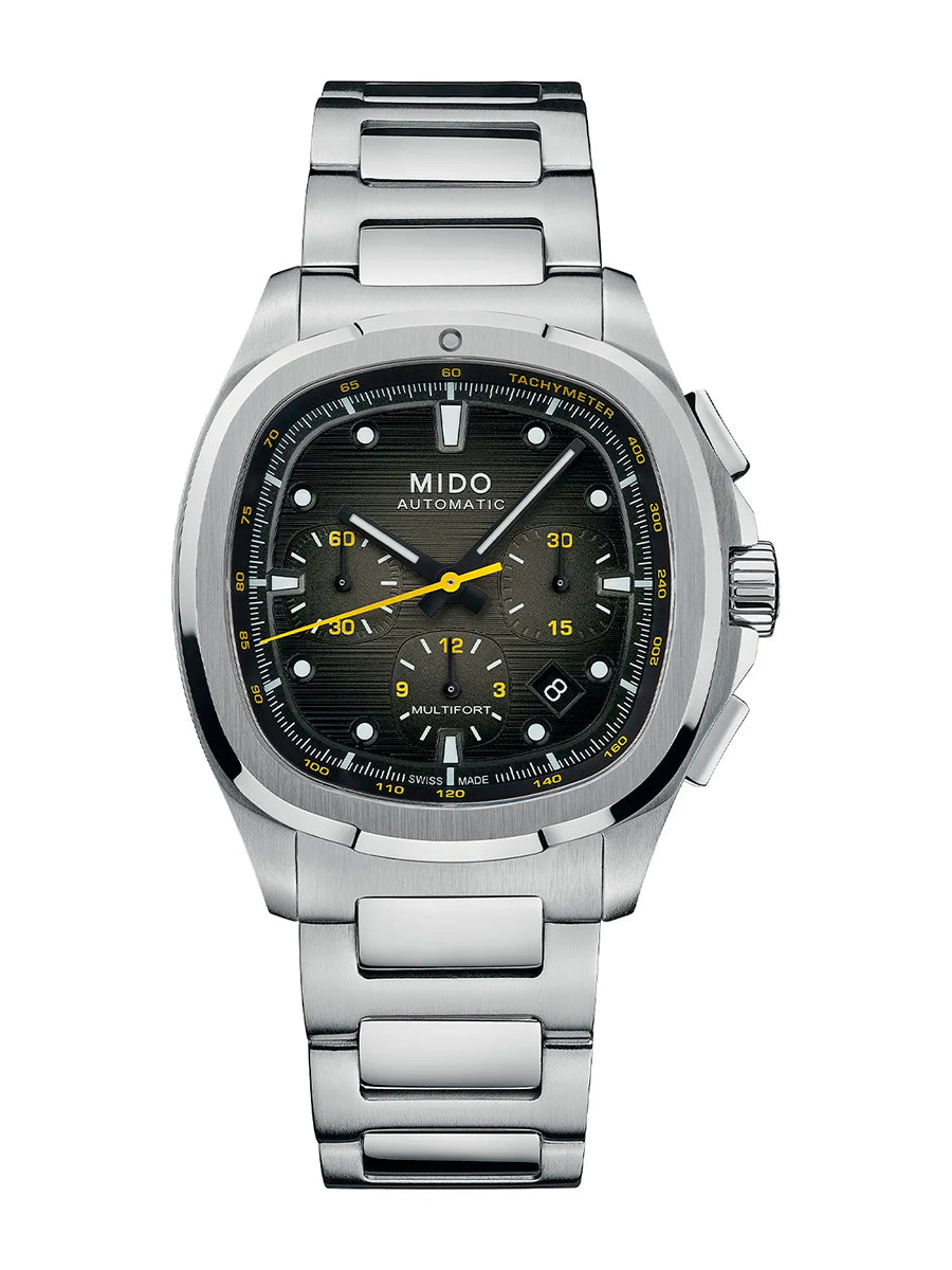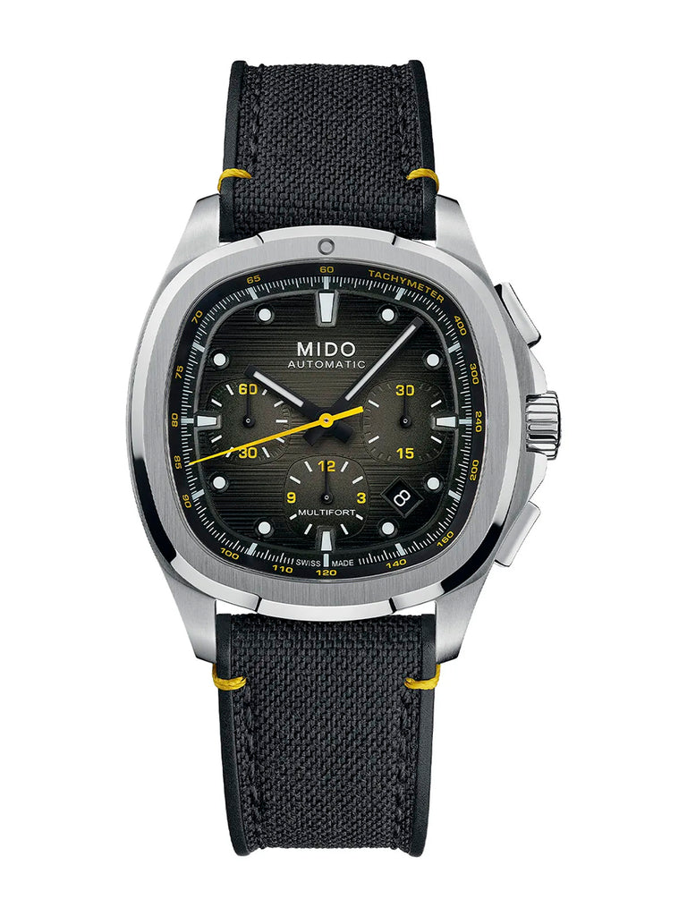 ¡Un diseño que capta todas las miradas! Fiel al espíritu audaz de MIDO, Multifort TV Chronograph impone su carácter con una caja única en forma de TV. Su silueta contemporánea se realza con una carátula cepillada en horizontal, dos contadores integrados con sutileza y detalles en contraste que resaltan su personalidad. En su interior late el Calibre 60, un movimiento automático suizo de alta precisión que ofrece hasta 60 horas de reserva de marcha. Técnico, expresivo y perfectamente equilibrado, este reloj está diseñado para acompañarte en cada momento destacado del día. Incluye una correa adicional para mayor versatilidad y comodidad.