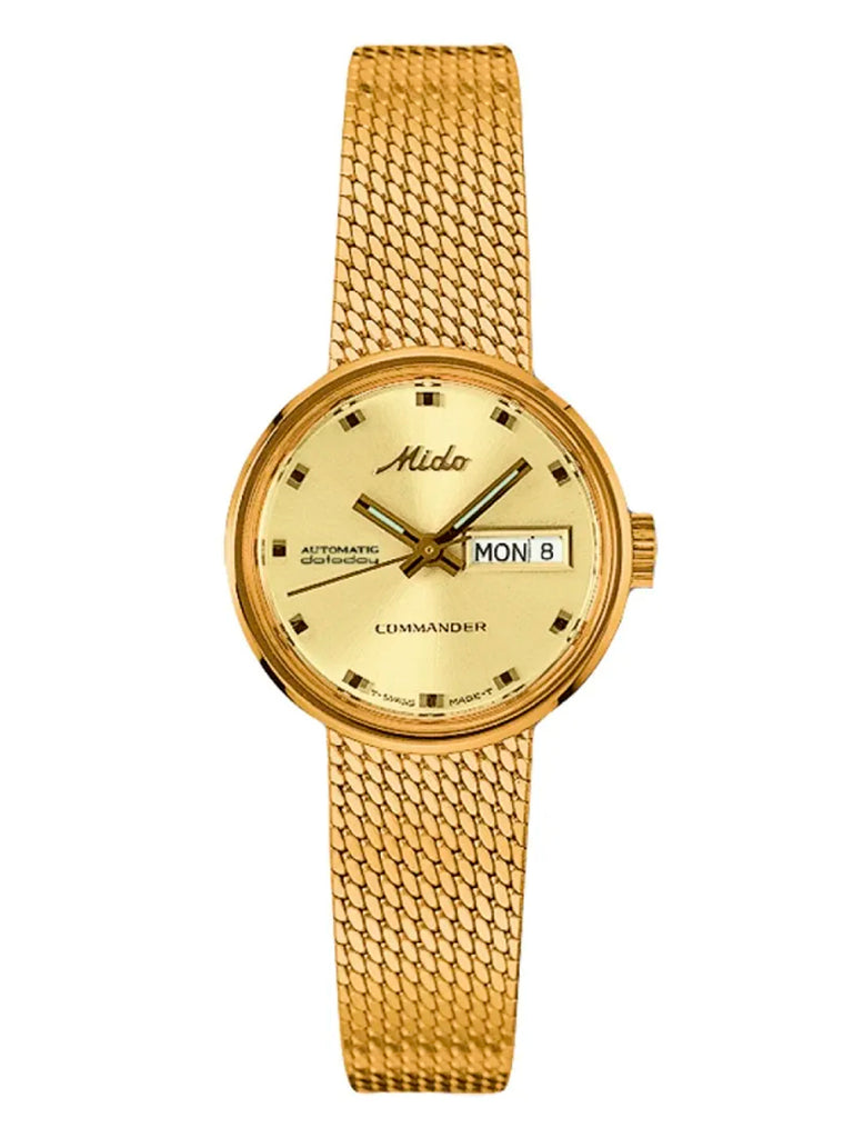 El reloj suizo Commander 1959 se produce sin interrupción desde ese año. El brazalete integrado y el logotipo vintage de Mido son típicos de este modelo icónico, así como la caja monocasco que alberga un movimiento automático.